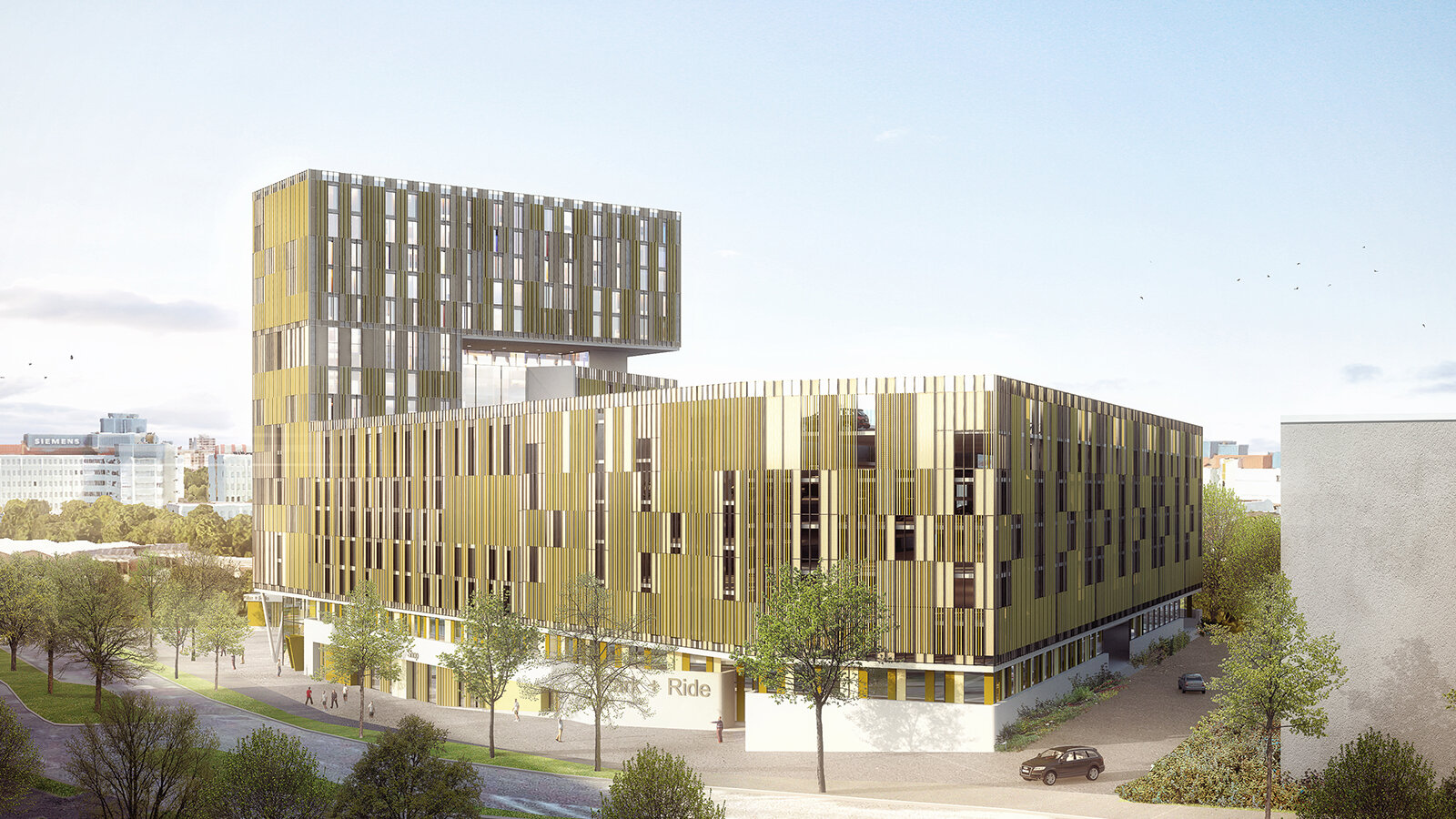 The new boarding house along Carl-Wery Straße in Munich creates a gateway in the direction of Munich's inner city. Two differently sized structures form an encompassing figure in the middle of which a joint arises. The joint initially forms the entrance to the boarding house and after that develops into a combining vertical airspace. Ultimately the joint ends as a transparent fitness room with a view over Munich up to the Church of Our Lady. With this it creates a visual connection between the hectic outside world and an inner haven of peace. The lobby on the 1st floor combines this inner and outer world.