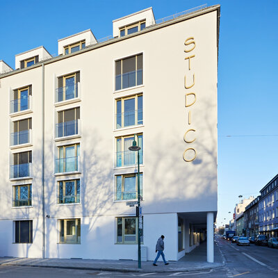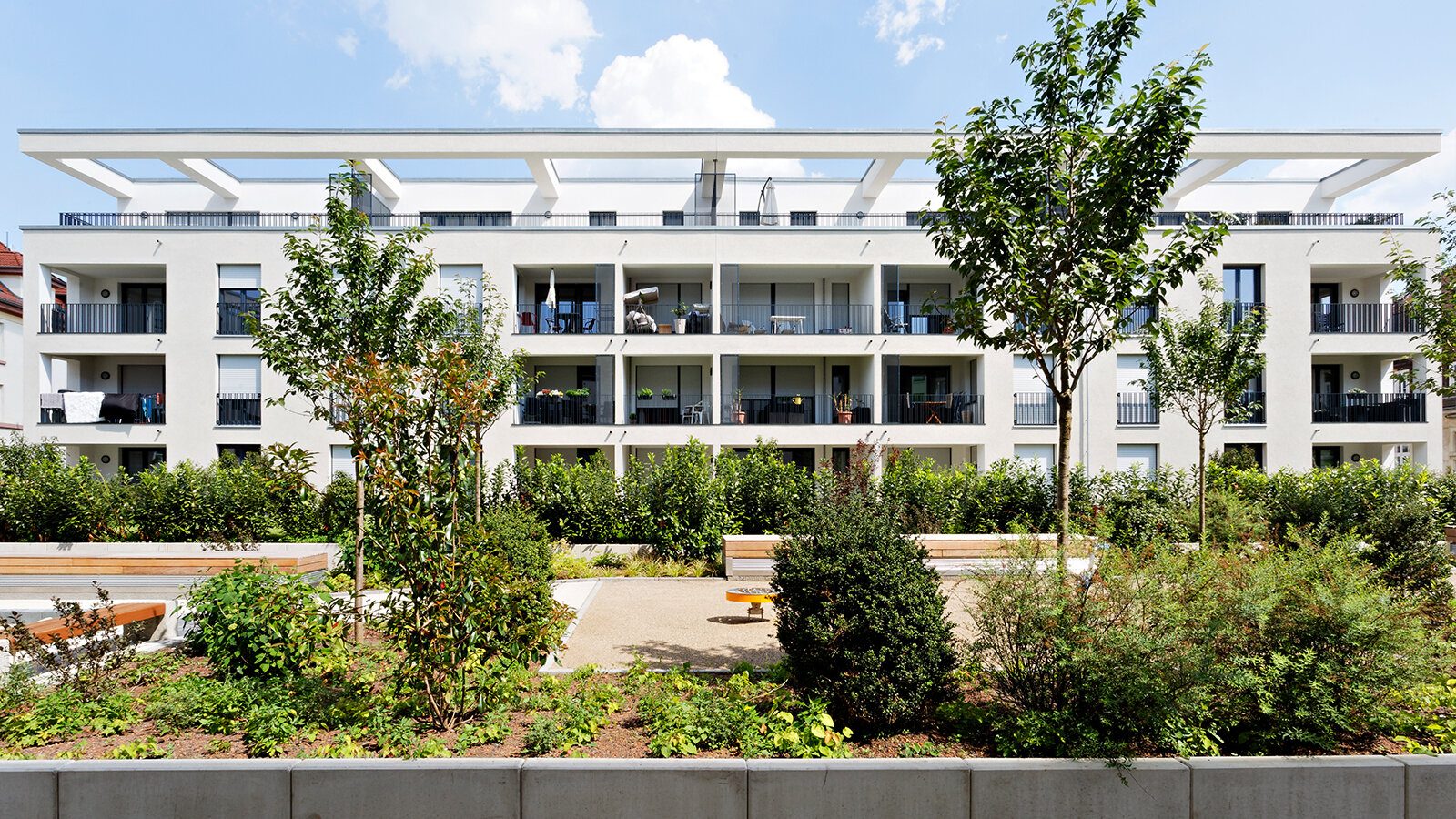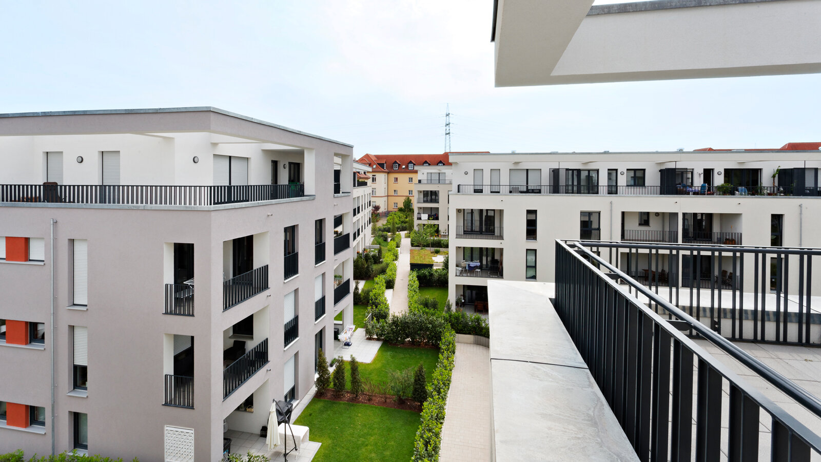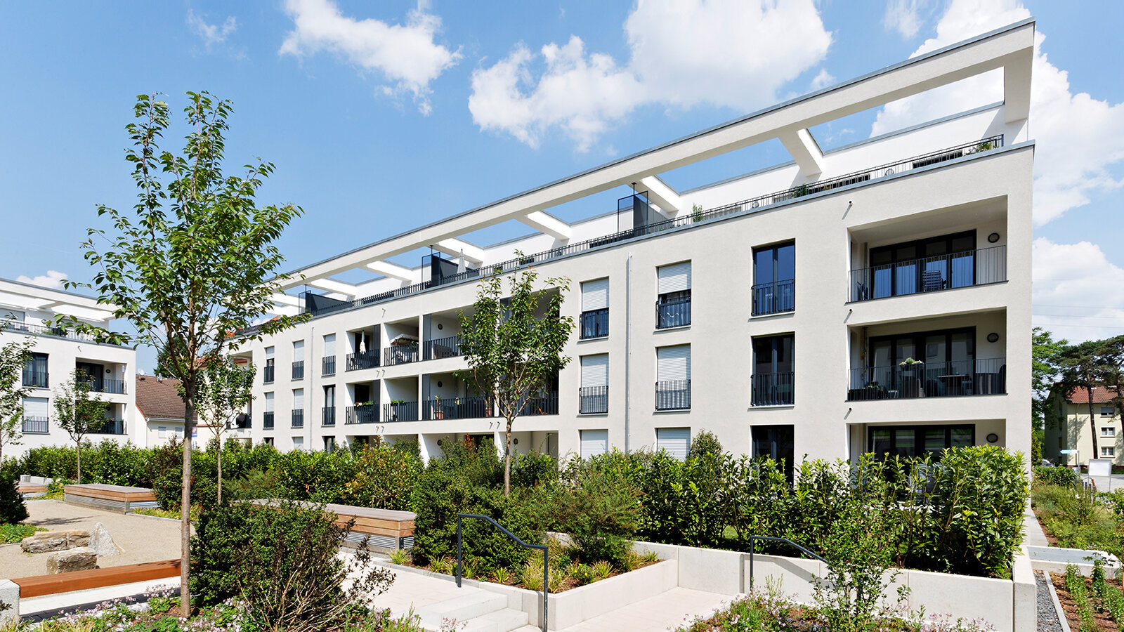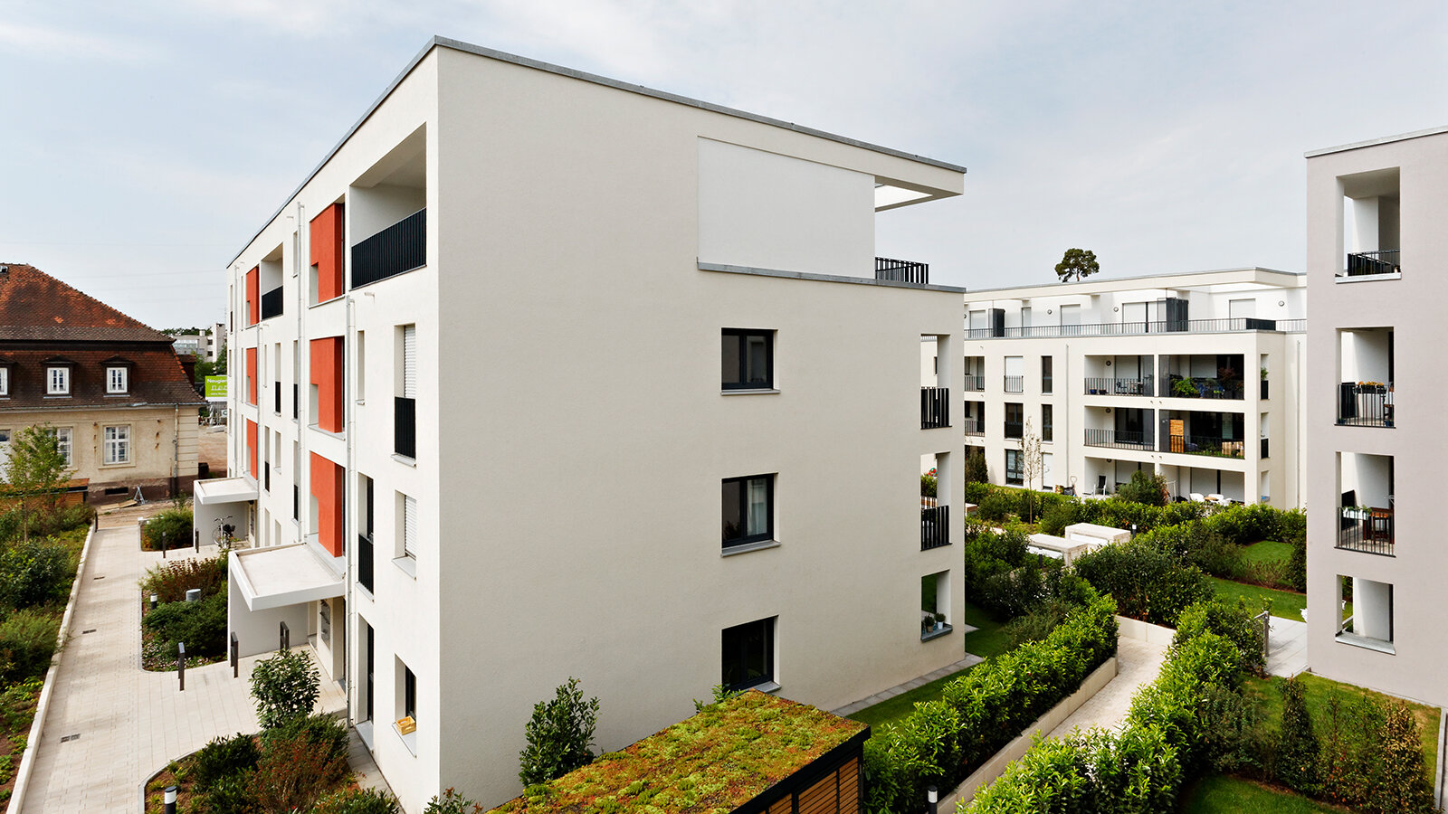 The three-storey apartment buildings designed by planquadrat with penthouse level are characterised by an elegant and plain architectural language. The cubic structure with the white facade surfaces are divided up by spacious loggias and horizontal window hinges and have roof terraces that are cut out of the entire shape. The colours are conveyed in the new buildings between the former barracks buildings on Michaelis, Koblenzer Straße and the existing buildings in the area in order to emphasise the urban concept.