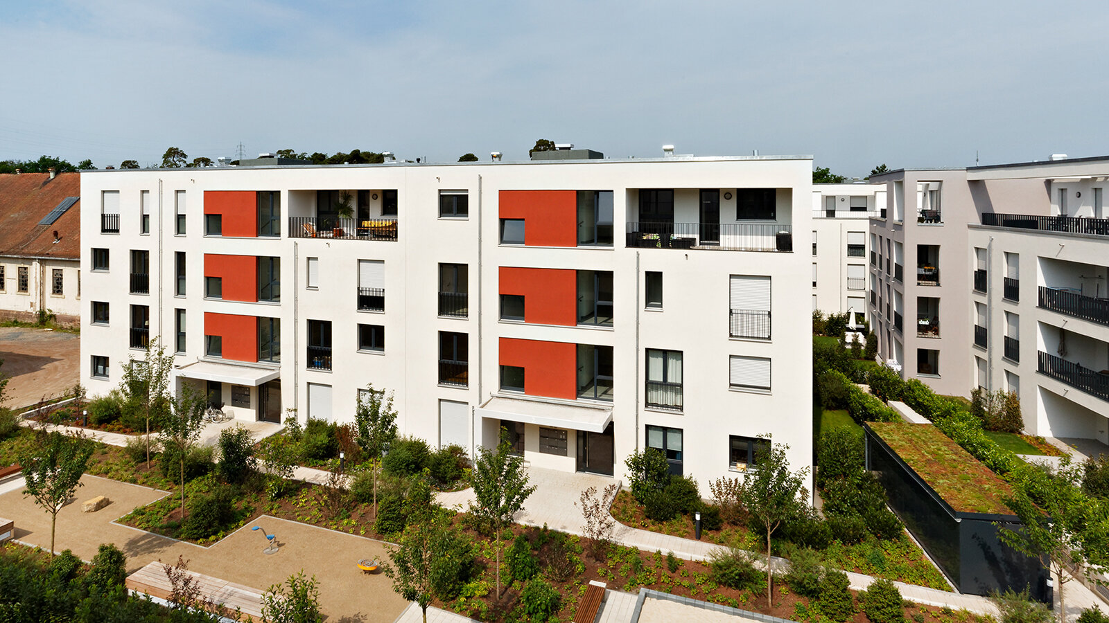 The new residential quarter provides for a scattered development comprising six apartment buildings as well as five terraced houses and integrates the listed buildings in the newly developed urban concept. These partly originate from the time of the first world war when there were barracks here for aeronauts and radio operators, the other parts from the 1950s.