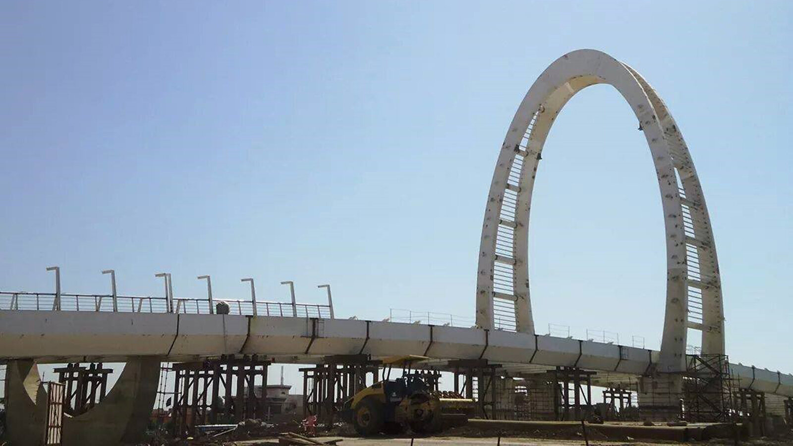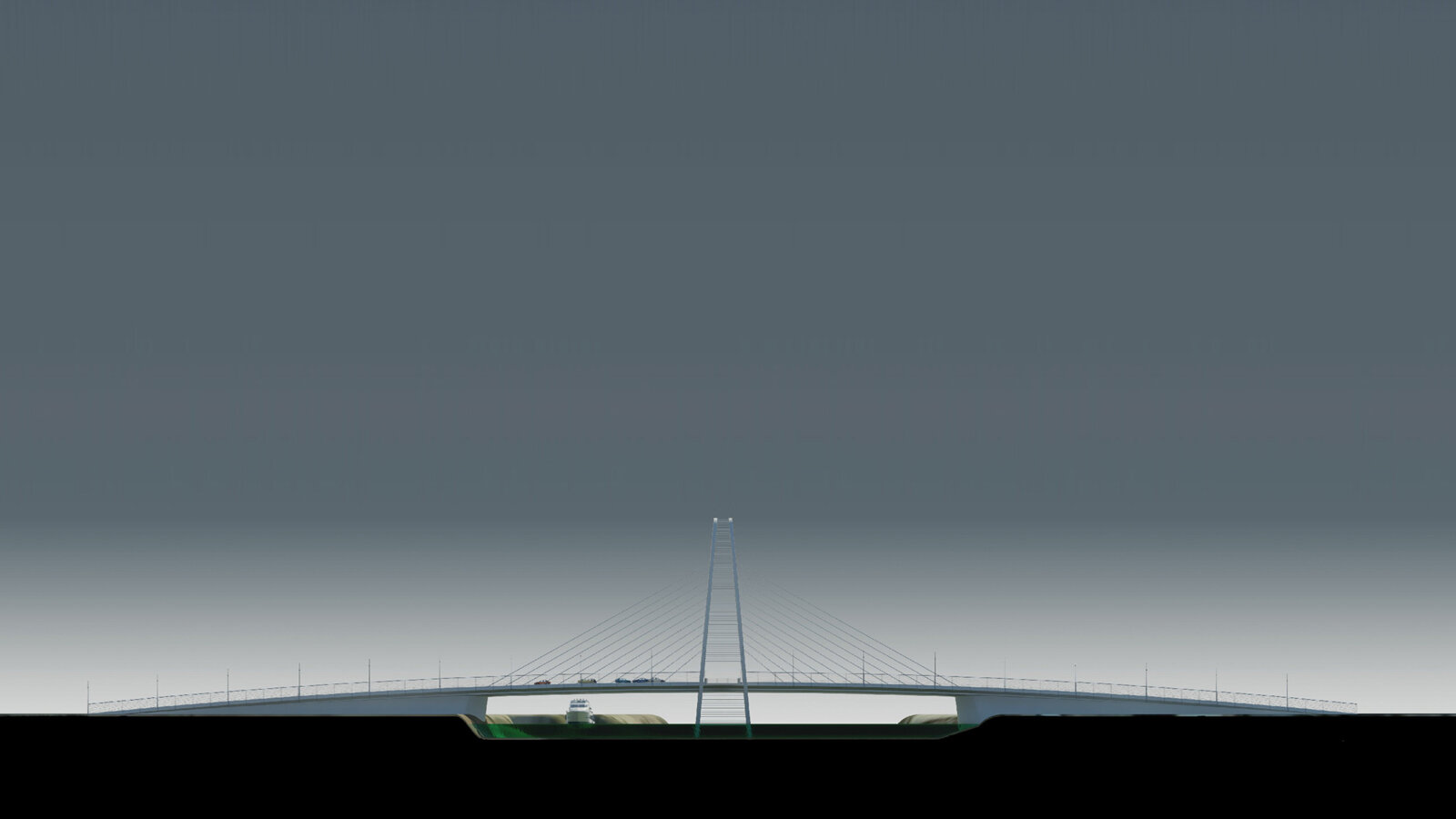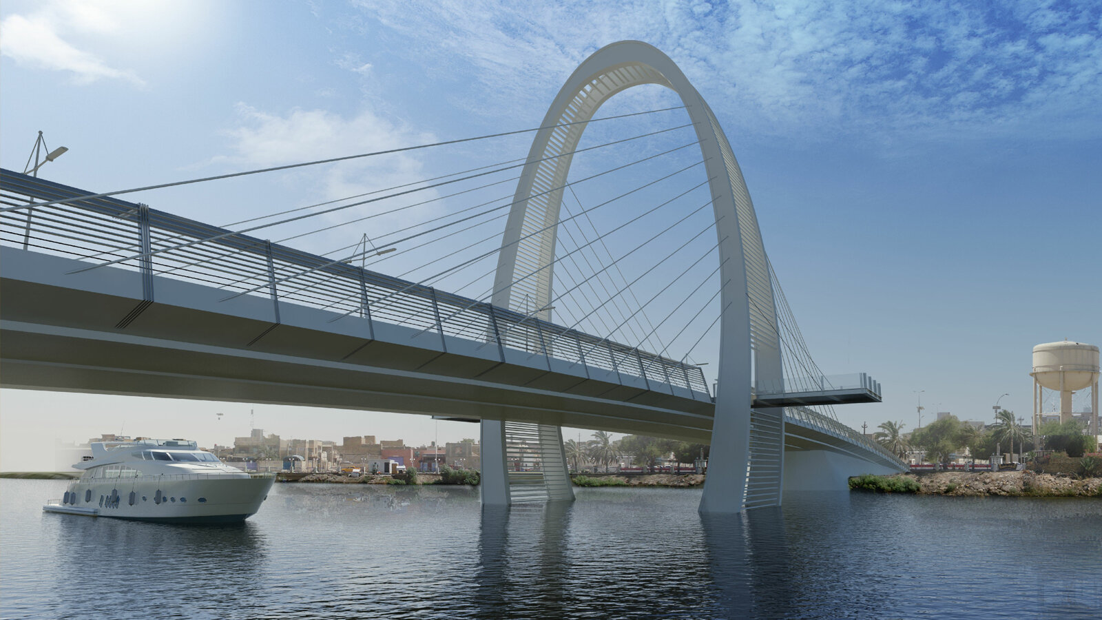 Amara is the only Iraqi city situated on three rivers. In order to bring more urban districts together, a new bridge is to combine the banks of the Tigris with each other. The new bridge is likewise to be perceived as a symbol of generosity and hospitality. The vision of the gate to the future as a modern landmark of the up-and-coming city. The cable-stayed bridge has a total length of 342 m and a width of 20 m. The central bridge pier bears the respective 143 long road section with its 22 cables on each side. The column protrudes 47m over the water level of the Tigris.