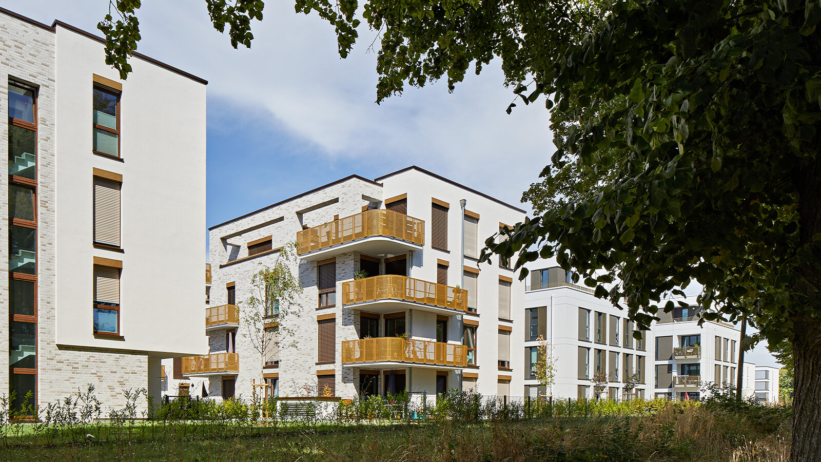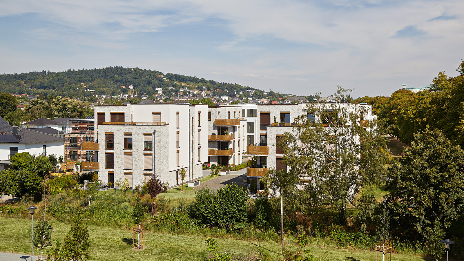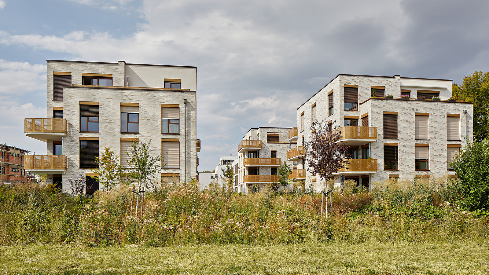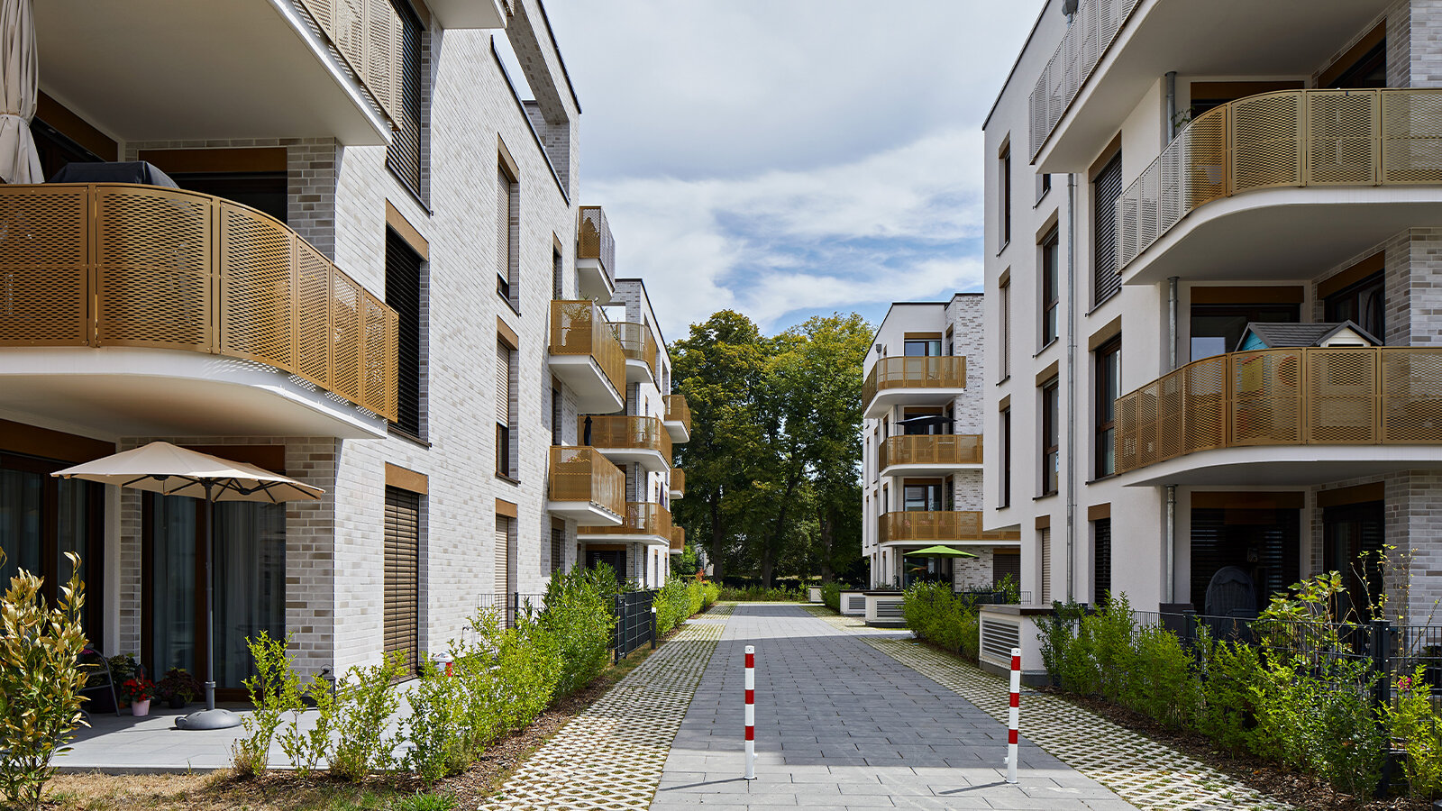 Four tower blocks with 31 high-quality condominiums and generous outdoor spaces have been built in Bad Nauheim in a central location, yet nestled in the green surroundings. The four-storey solitary buildings with their varied combination of clinker brick and rendered surfaces are emphasised at selected block corners by balconies with golden expanded metal. They are arranged like windmills on the plot, creating generous views from the residential courtyards into the neighbourhood. At the same time, a central and communicative residential path is created to provide pedestrian access to all the houses. The flats have clearly structured utilisation areas: the living area opens up to the south-west with a spacious balcony or roof terrace, while the bedrooms are located on the side facing away from the sun. The group of buildings is connected by a shared underground car park.