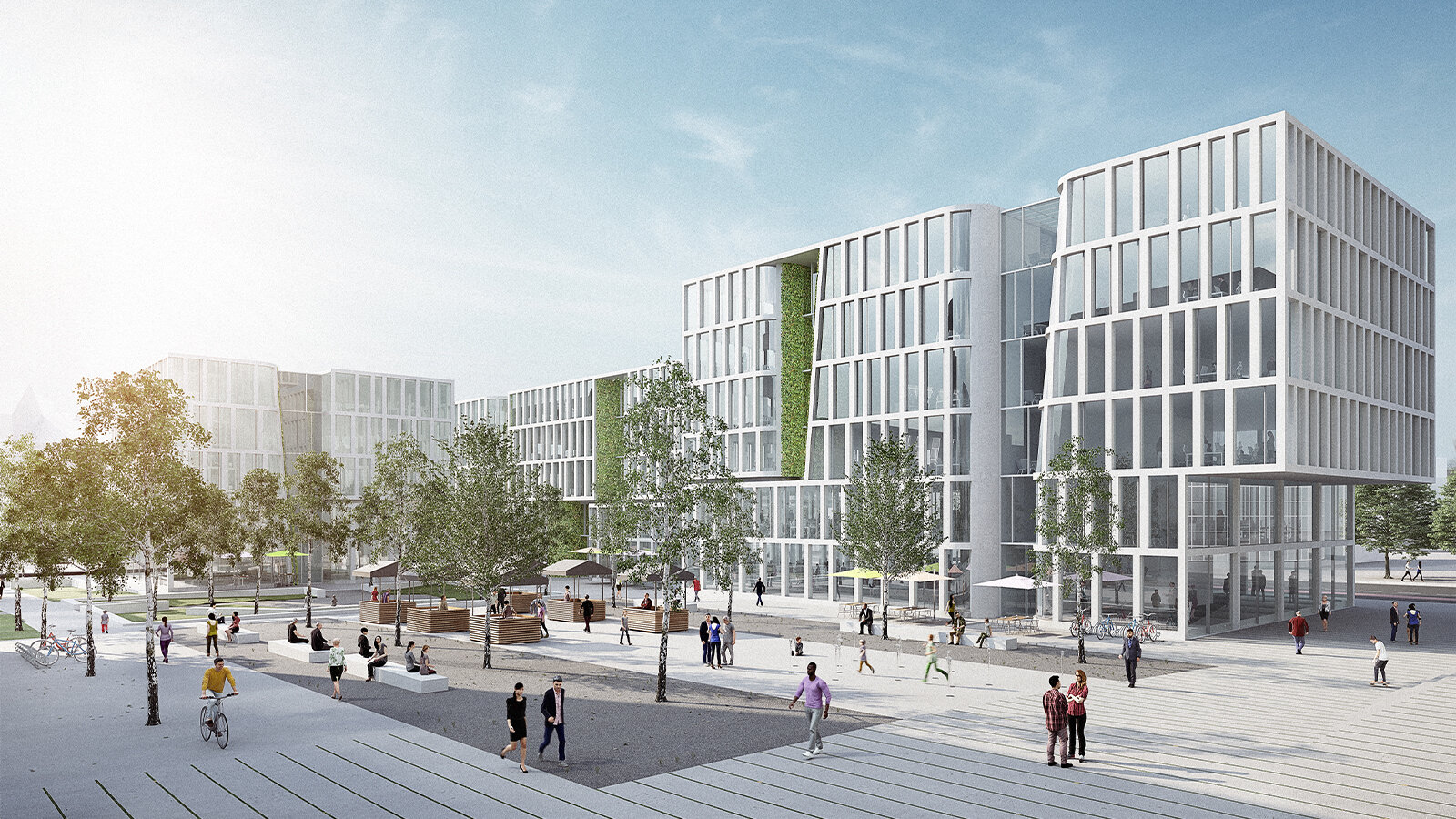 In relation to the immediate neighbourhood of the Müller Medien publishing house and the surrounding administrative buildings, the aim is to formulate an urban edge that embraces the street space and, at the same time, to pay respect to the striking existing building in the centre in terms of urban planning. Accordingly, the new cubatures are to be grouped around the existing building.
