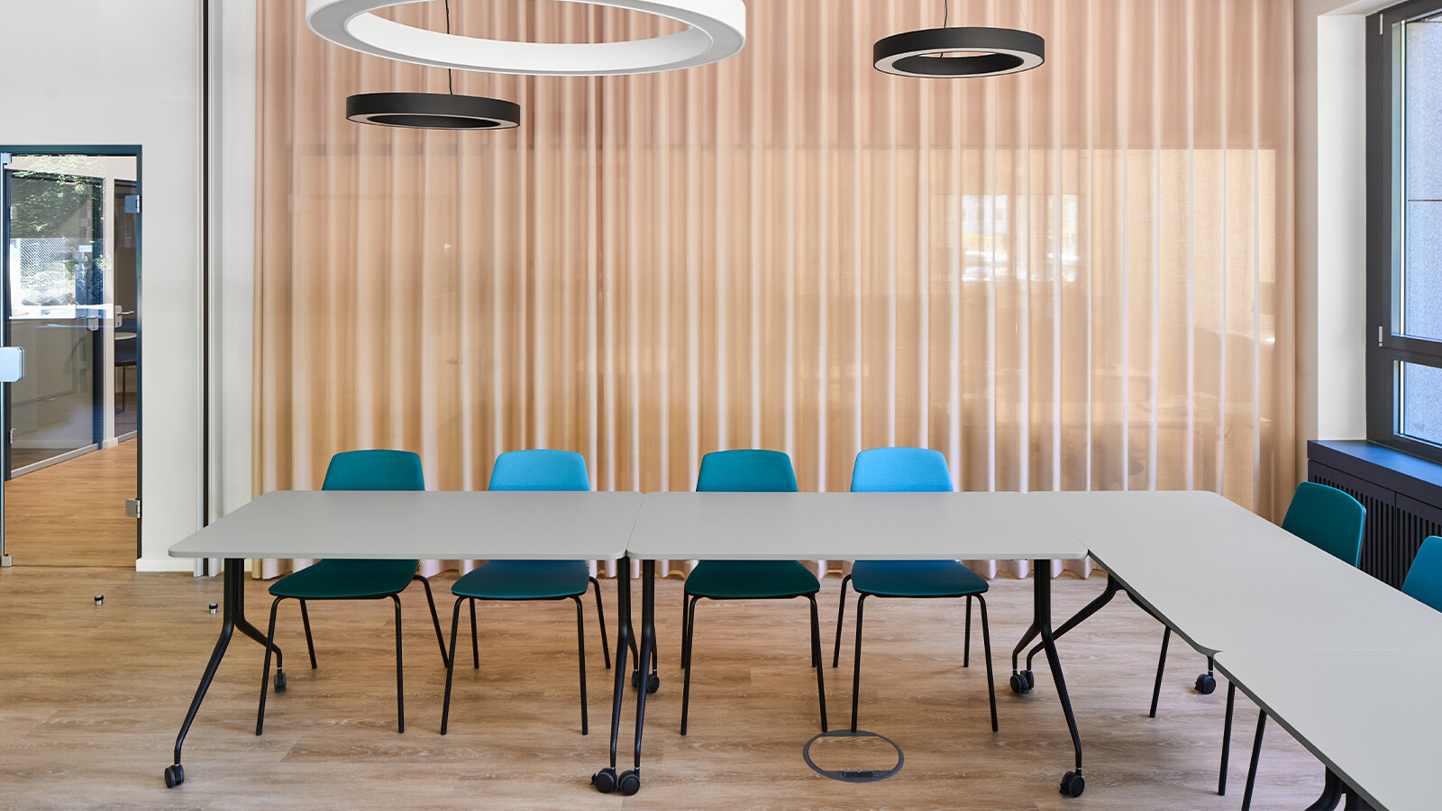 The Kerry Group, an Irish flavour and fragrance company, wanted to set up a customer-oriented food laboratory on the ground floor of an existing office building at one of its sites. Specialised laboratories for beverages, meat, bakery and general flavours were created on approximately 450 square metres, along with a work area for employees and a conference room for visitors. Viewing windows in the corridor allow visitors to see the work processes. The customer area was designed to be high-quality and flexible to accommodate office workstations or larger conferences as required. The flexible furnishings also include a kitchen and telephone booths. After submitting the building application last year, the laboratory has been in operation since April of this year. The particular challenge lay in the ventilation planning: since some laboratories were not allowed to be ventilated directly into the outside air or via the roof, filter systems were used. In addition, the equipment, some of which was very heavy, had to be statically secured. For this purpose, load distribution plates were installed in the existing raised floor to distribute the loads evenly.