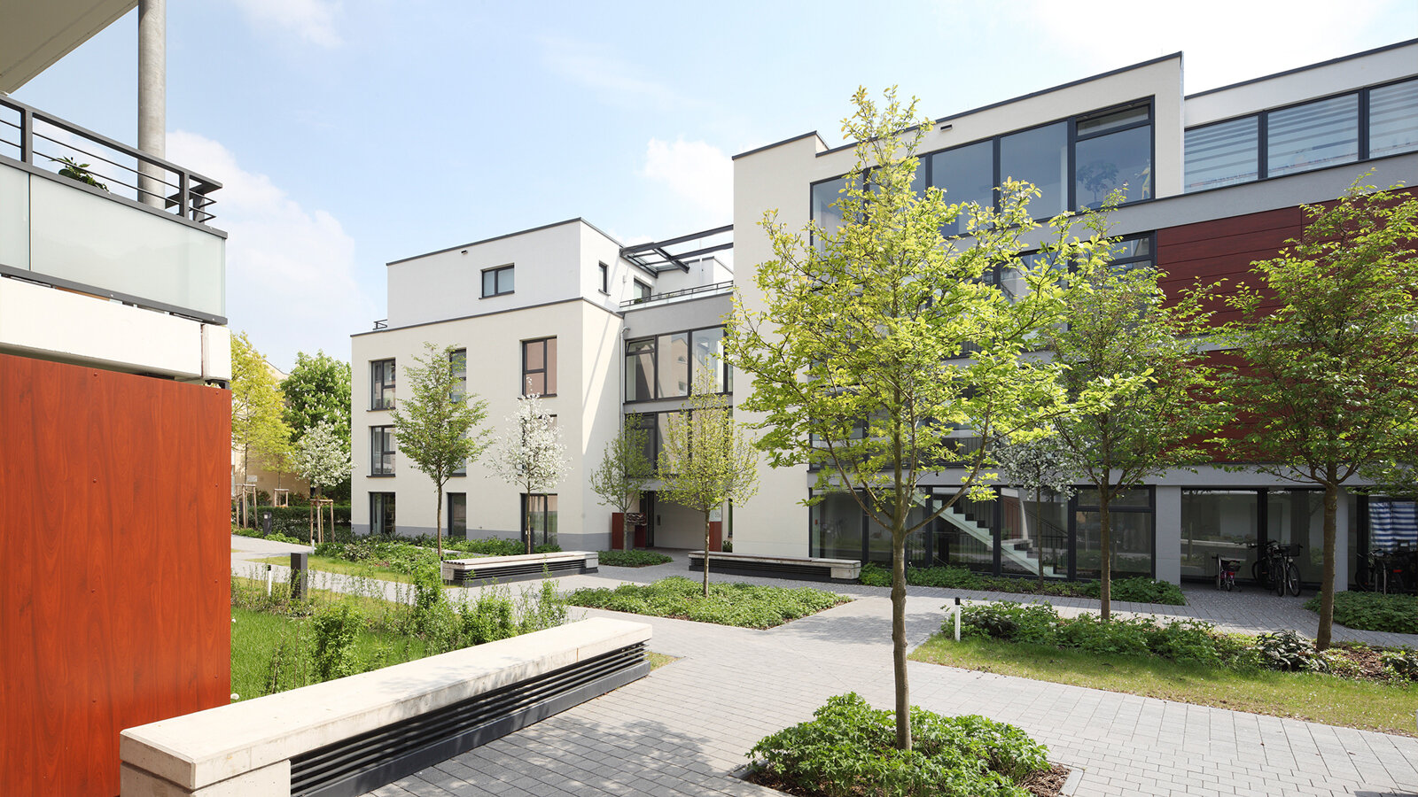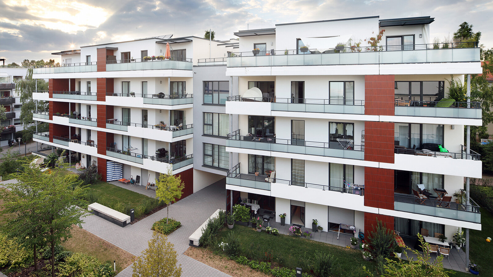 In der Wohnanlage am Marbachweg in Frankfurt sind 43 barrierefreie Wohnungen in zwei Baukörper entstanden, die ein städtisches Leben im hohen Alter ermöglichen. Die Architektur definiert sich durch nordseitig großzügig verglaste und helle Treppenhäuser mit Aufenthaltscharakter. Südseitig geben große Balkone über die gesamte Fassadenbreite dem eigenen Außenbereich eine herausragende Qualität. Akzentuierte Fassadenflächen in warmtonigem Plattenmaterial unterstützen den hochwertigen Gesamteindruck.