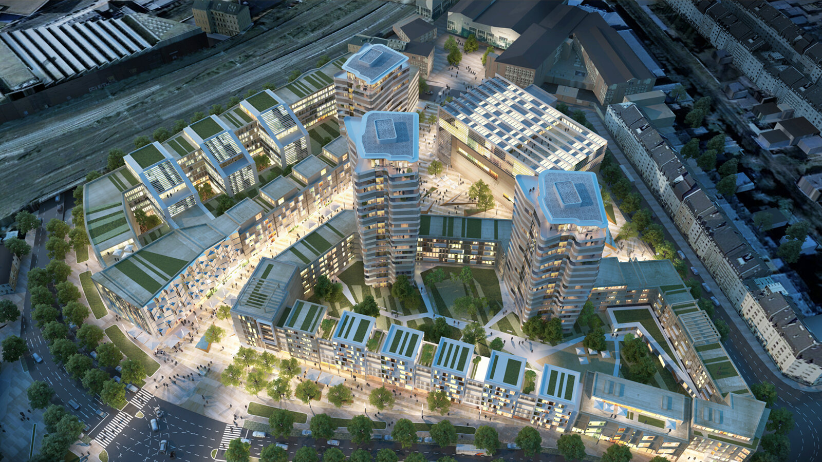Ziel des Entwurfes ist es, starke, identitätsstiftende Außenräume zu gestalten, die für die angrenzenden Nutzungen einen hohen Wiedererkennungswert und optimierten Immissionsschutz bieten und so maßgeblich zu einer hochwertigen Adressbildung beitragen. Drei Wohnhochhäuser gliedern und rhythmisieren die Campo- Bebauung und bieten an der ersten Adresse im Quartier attraktive Wohnungen an. Der Gebäudebestand wird selbstverständlicher Baustein der Entwicklung und kann durch seine neue Gestaltung und Nutzung einen besonderen Beitrag zur Identität des neuen Quartiers leisten. Der Campo als öffentlicher Raum wird zur repräsentativen Bühne für die Bürger der Stadt.
