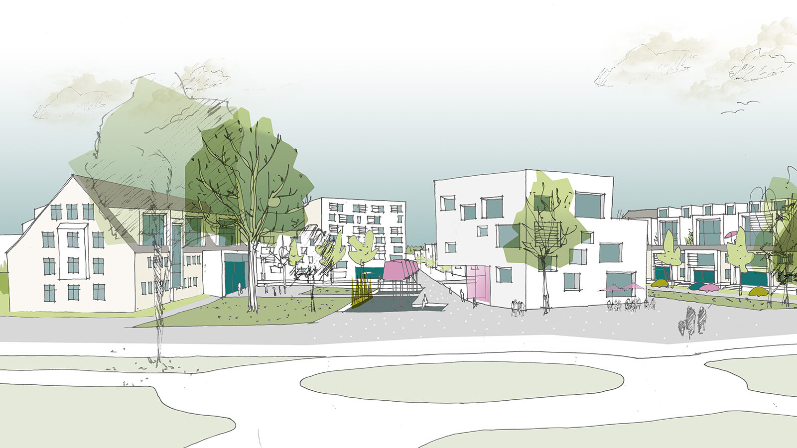 Bestandsgebäude wie die ehemalige Kantine, die Kirche und die Mannschaftsgebäude „10 Brüder“ sollen umgenutzt und entlang des Parkes räumlich spannend in Szene gesetzt oder – wie die alte Heizzentrale – zum Herzstück eines neuen Quartiers werden.