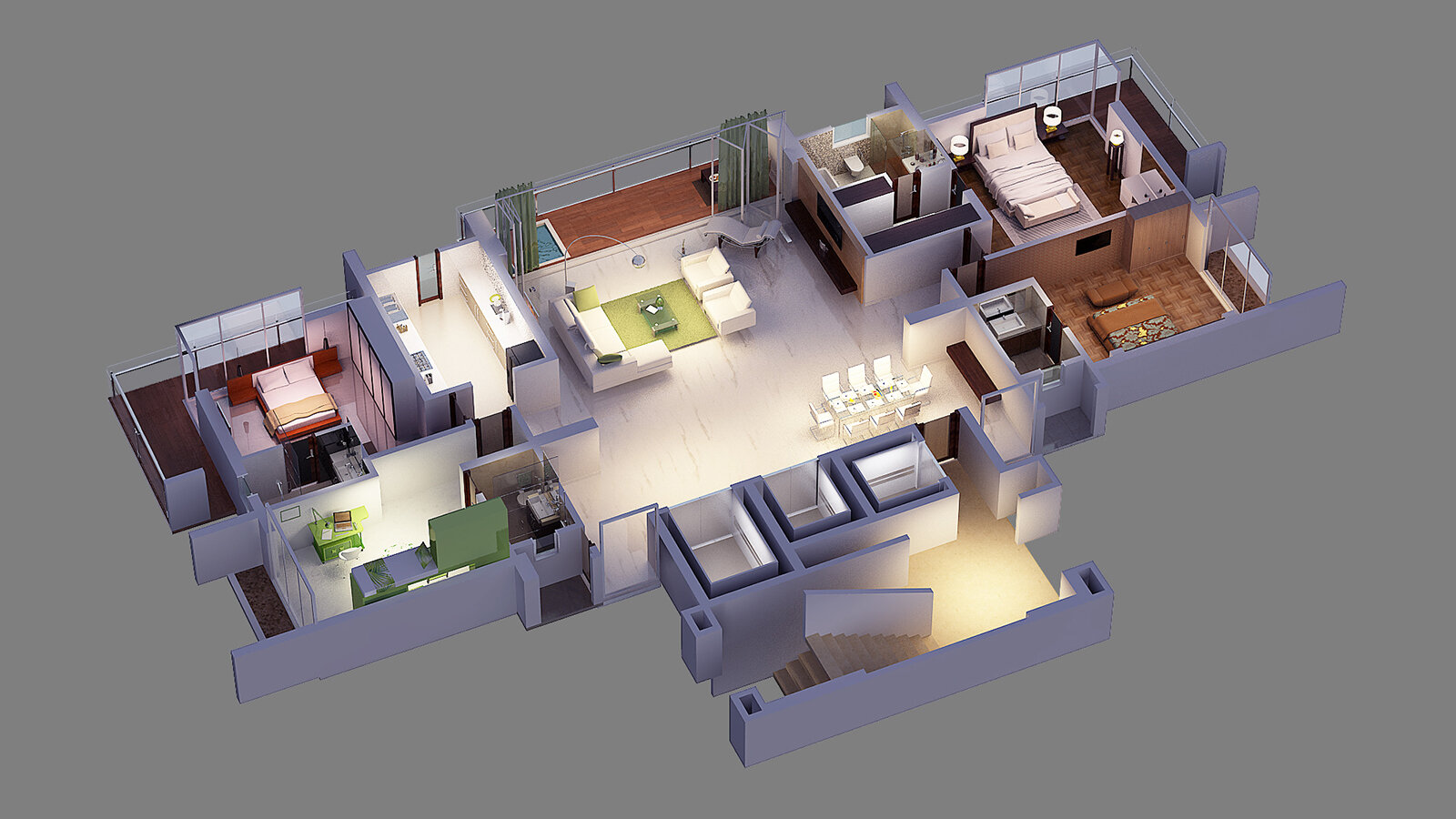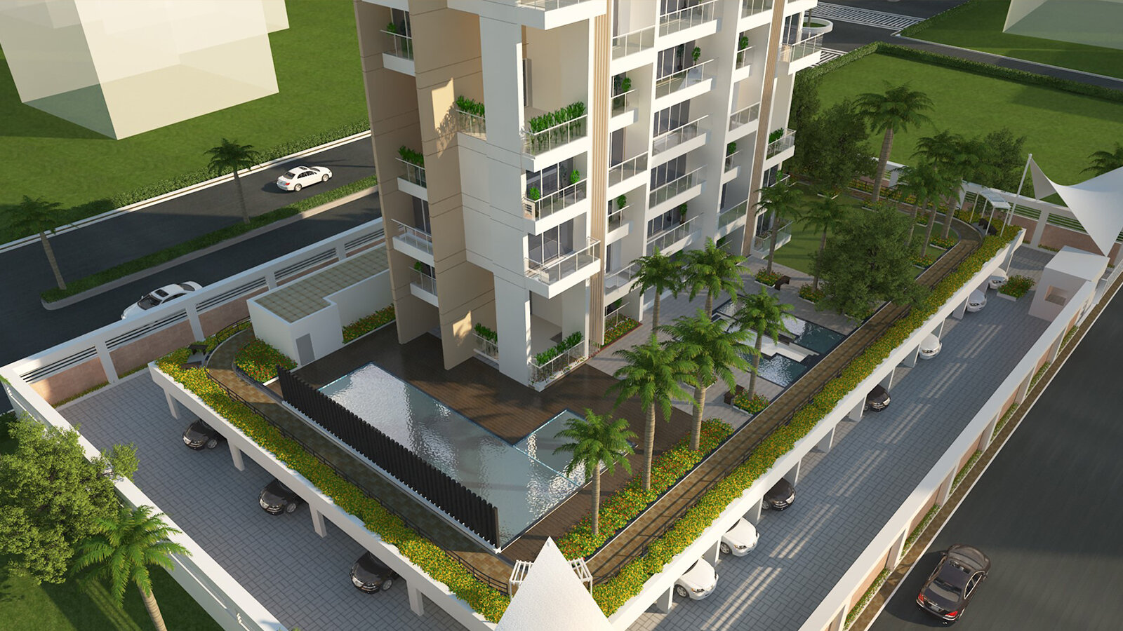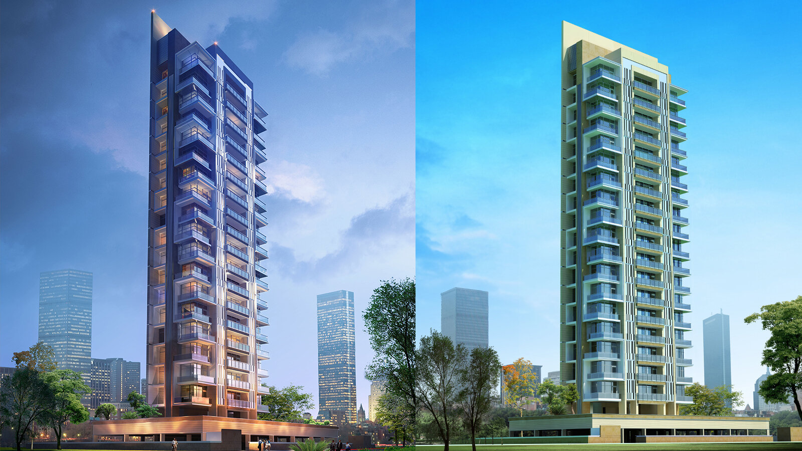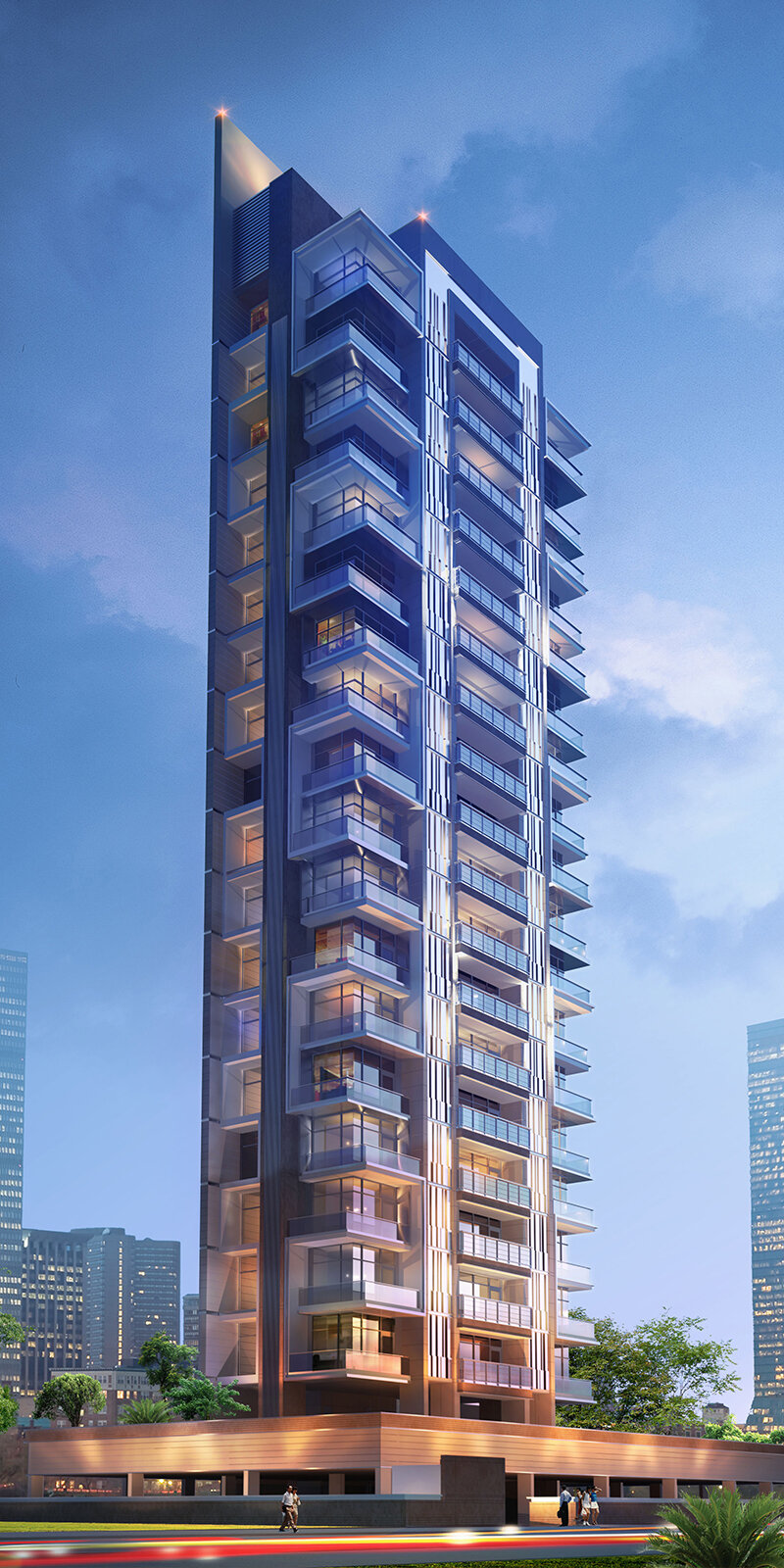 Das K1 Apartmentgebäude ist ein qualitativ sehr hochwertiges Wohnhochaus mit Blick auf die Berge und den Park von Khargar, den Isckon Tempel und einen Golfplatz. Auf jedem Geschoss liegt je eine große luxuriöse Vierzimmerwohnung, zu der jeweils drei Parkplätze im Sockelgeschoss gehören. Auf dem weit auskragenden Dach des Parkdecks befindet sich eine offene Gemeinschaftszone mit Pools, Laufstrecke, Fitness- und Veranstaltungsräumen sowie einem Fitnessraum.