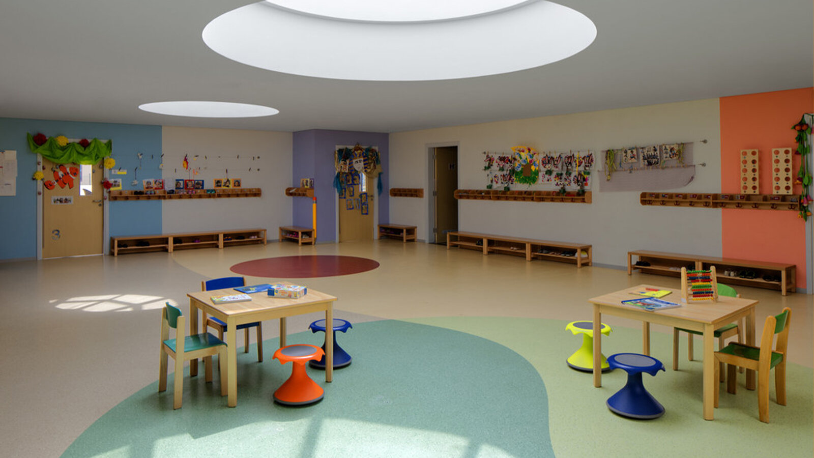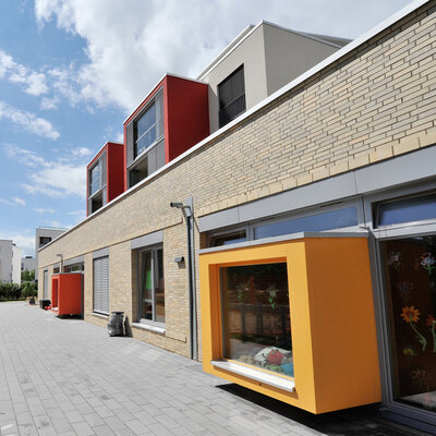 Der getrennt angelegte Kindergarten fügt sich als flacher Gebäuderiegel mit einem großzügigen Außengelände an den Schulkomplex an.  Der Neubau wurde in Stahlbeton-Fertigbauweise nach nur einjähriger Bauzeit errichtet und zählt zu den modernsten deutschen Auslandsschulen.